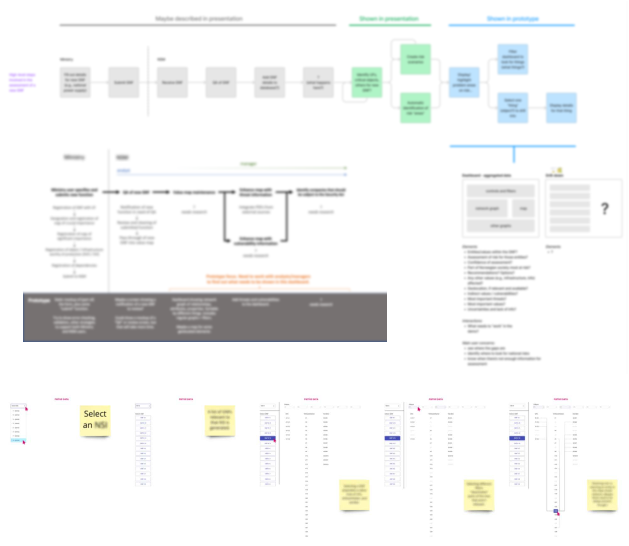 task analyses, page flows, early wireframes (unreadable by necessity)